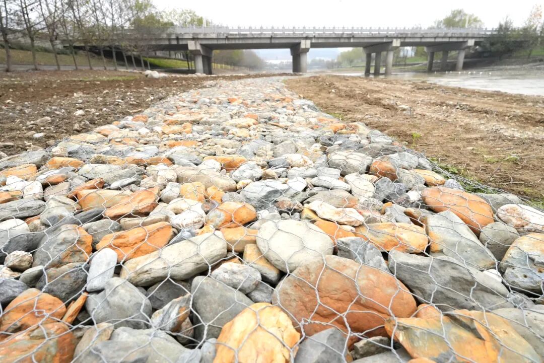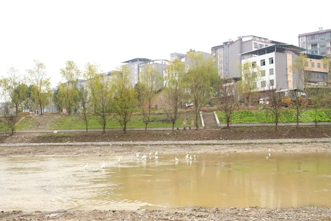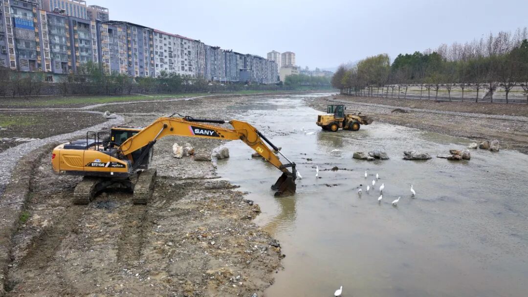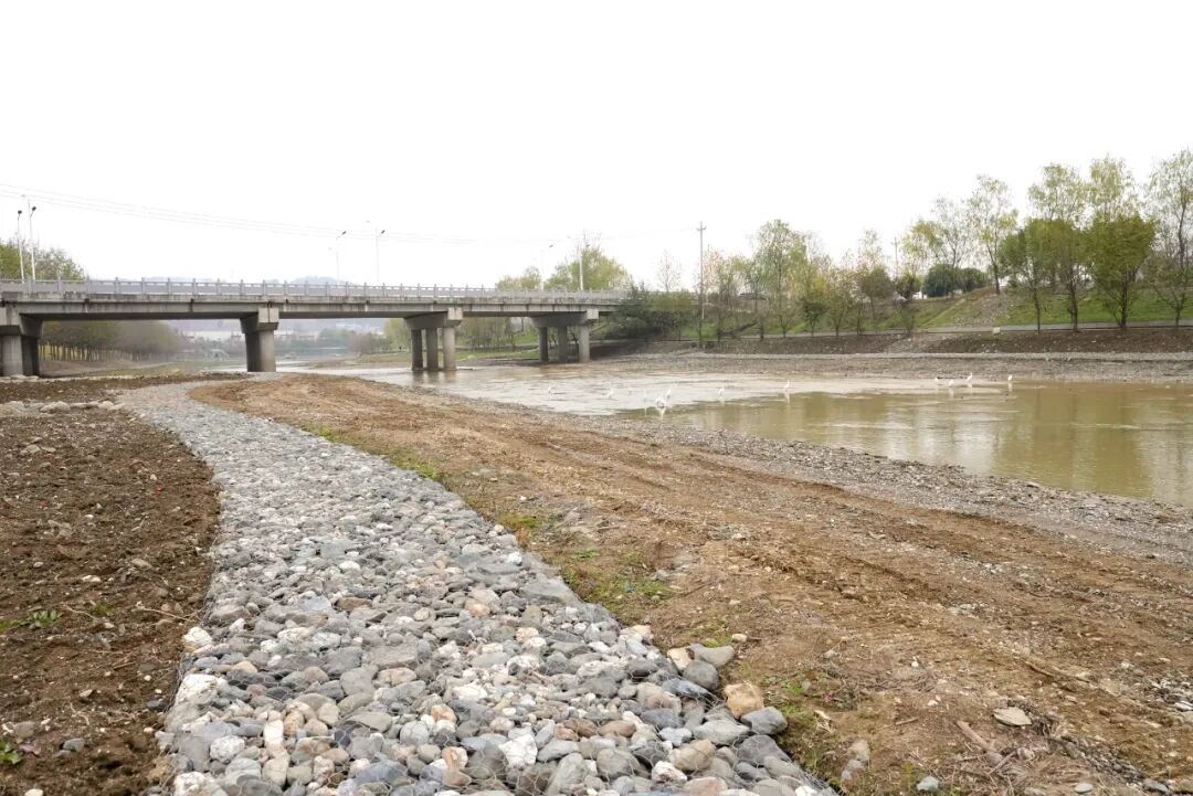 只見挖掘機、裝載車往來穿梭,正忙著清理河道、運輸石料。工人師傅們分布在各個點位,加緊進行河道護岸修建格賓石籠綁扎、石料填充、堤岸加固、植被種植等作業(yè)。河道中數十只白鷺嬉戲、覓食,構成一幅亮麗和諧的“水生態(tài)畫卷”。