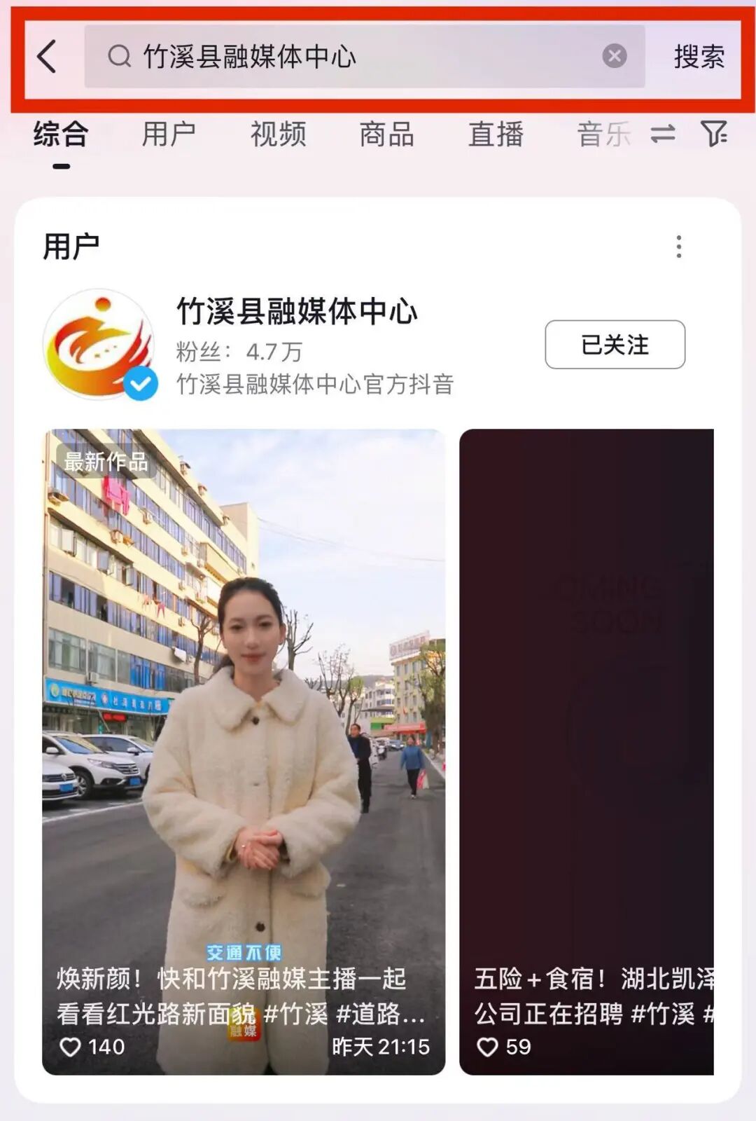 2.關注【竹溪縣融媒體中心】官方抖音。
