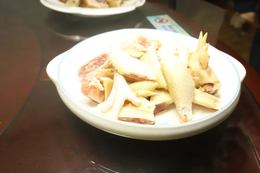制作竹溪蒸盆,首要是精選當地土生土長的食材。土雞,需是在山林間自由覓食、奔跑嬉戲長大的,肉質緊實而富有彈性,帶著大自然的靈動氣息;豬蹄,以半臘制為佳,那獨特的臘香是時光與煙火的凝練,每一絲紋理都蘊含著歲月的醇厚韻味。想要湯鮮美必然少不了香菇,深山出好物,竹溪的菌菇十分出名,生長在山林的腐木之上,吸日月精華,納山川靈氣,菌蓋肥厚,散發著濃郁的山珍芬芳;山藥,深埋于土地之中,汲取大地的養分,質地細膩,口感粉糯,自帶一股質樸的甜香。此外還需軟糯香甜的高山土豆、汁水四溢的紅蘿卜、高山珍品藥材天麻和枸杞,每一樣選材都經過精心嚴格的挑選。