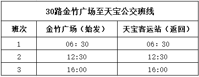 30路金竹廣場至天寶鄉(xiāng)公交班線站點、班次、票價(試運行)的公告