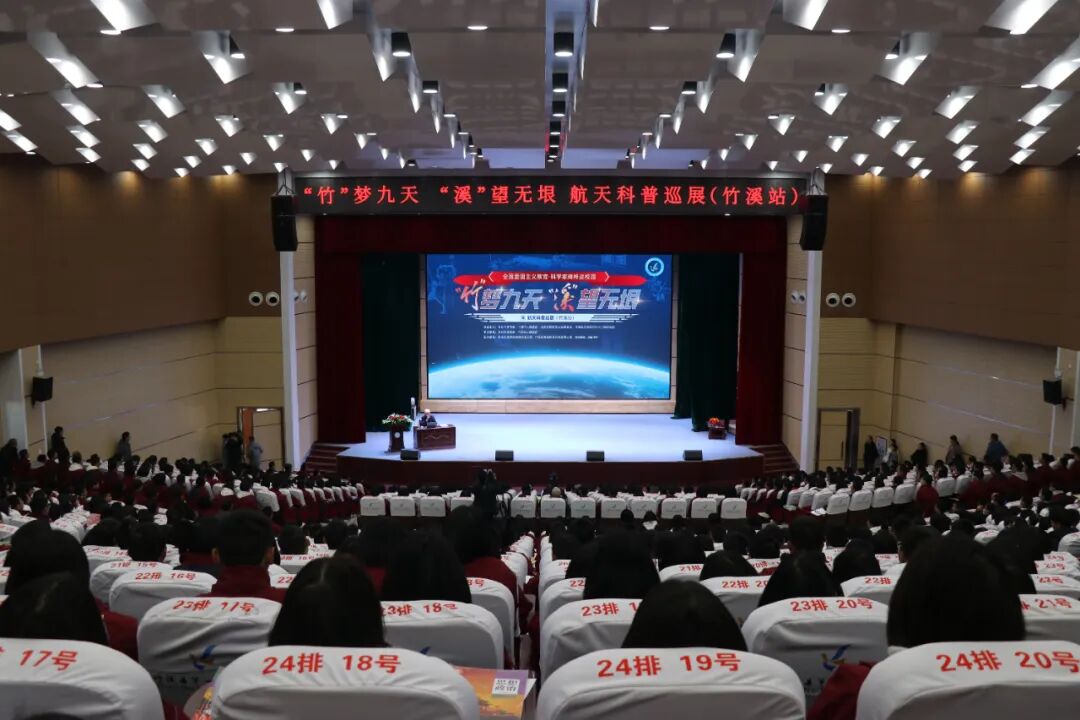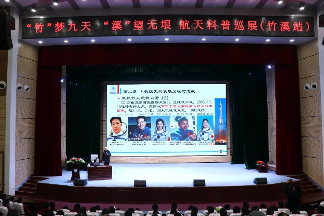 竹溪新聞網訊 記者 張亞楠 報道:1月11日下午,竹溪縣一中學術報告廳內卻涌動著航天夢的熱潮,為嚴寒的冬日帶來了溫暖的曙光。中國工程院院士、空間技術專家戚發軔,中國工程院院士、運載火箭專家龍樂豪等航天領域專家一行在“全國愛國主義教育·科學家精神進校園”活動中,為學子們講授航天科普知識。