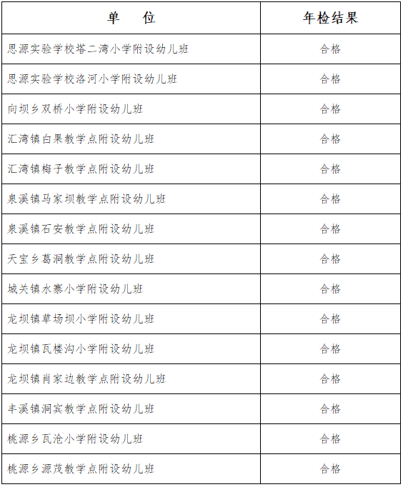 竹溪縣2025年度小學附設幼兒班年檢結果