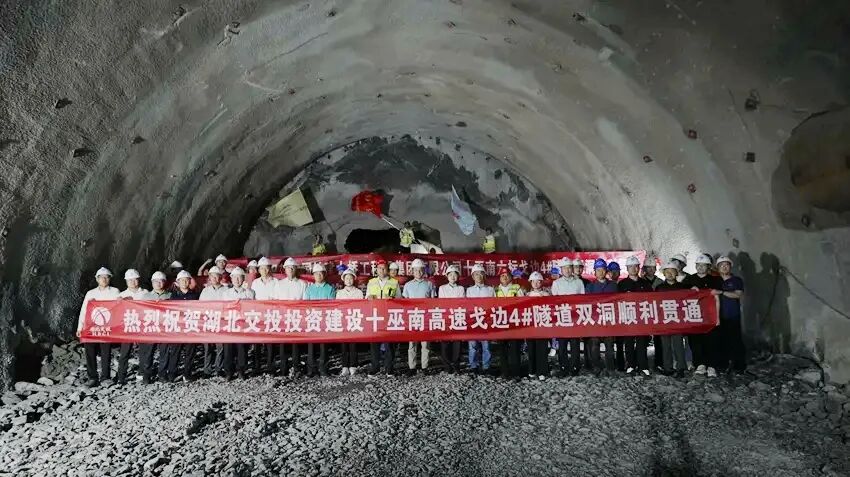 6月10日,由湖北交投集團(tuán)投資建設(shè)、中國鐵建大橋工程局集團(tuán)有限公司承建的十巫南高速公路第六標(biāo)段控制性工程——戈邊4號隧道雙洞順利貫通,比原計(jì)劃工期提前一個(gè)多月完成,成為十巫南高速全線首個(gè)完成隧道施工任務(wù)的標(biāo)段。這一里程碑式突破,不僅為項(xiàng)目通車按下“加速鍵”,更以“逢山開路”的魄力,打通鄂渝陜?nèi)〗唤绲慕煌▌用},有效完善三省交界出口通道網(wǎng)絡(luò),為區(qū)域協(xié)同發(fā)展注入強(qiáng)勁動能。