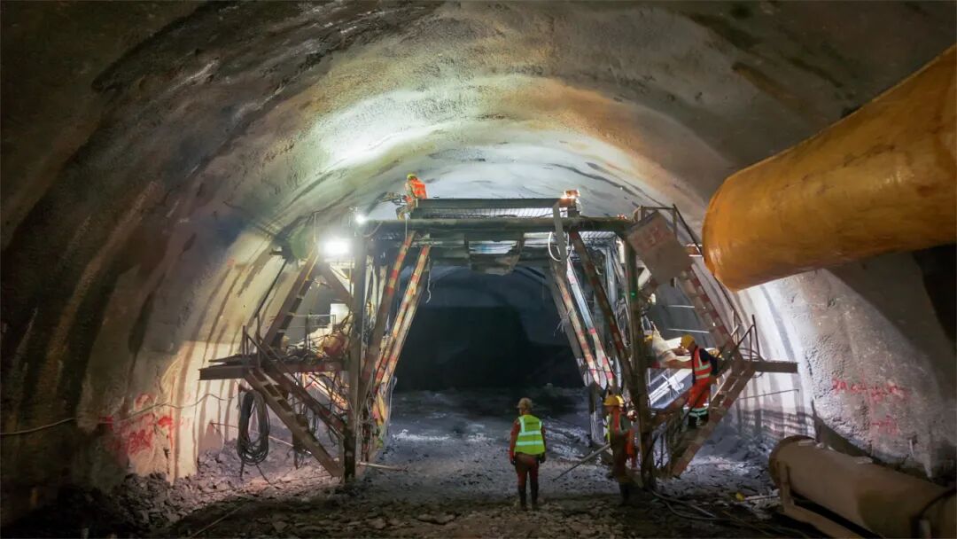 面對這一世界級施工難題,項(xiàng)目標(biāo)段建設(shè)團(tuán)隊(duì)以“科技+匠心”雙輪驅(qū)動模式協(xié)同發(fā)力。針對洞口段不穩(wěn)定堆積體的工程挑戰(zhàn),創(chuàng)新應(yīng)用“異型套拱”技術(shù),結(jié)合“零開挖”進(jìn)洞方法施工,實(shí)現(xiàn)對邊坡“零擾動”,貫通“零誤差”。在斷層破碎帶施工中,依托超前地質(zhì)預(yù)報(bào)技術(shù),探明地質(zhì)條件,綜合運(yùn)用超前注漿、管棚及小導(dǎo)管預(yù)支護(hù)加固圍巖,采取分部開挖快速封閉支護(hù)工藝,并強(qiáng)化鋼架噴錨與鎖腳錨管施工,同步建立圍巖變形與滲水實(shí)時(shí)監(jiān)測體系,動態(tài)優(yōu)化支護(hù)參數(shù),配合防水板與止水帶阻斷水巖作用,系統(tǒng)性防控塌方、冒頂及突水風(fēng)險(xiǎn),為隧道安全貫通提供全方位技術(shù)支撐。