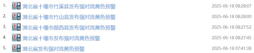今天(6月18日)湖北正式進入梅雨期,十堰也進入多雨期。今早,十堰多地發布強對流黃色預警。