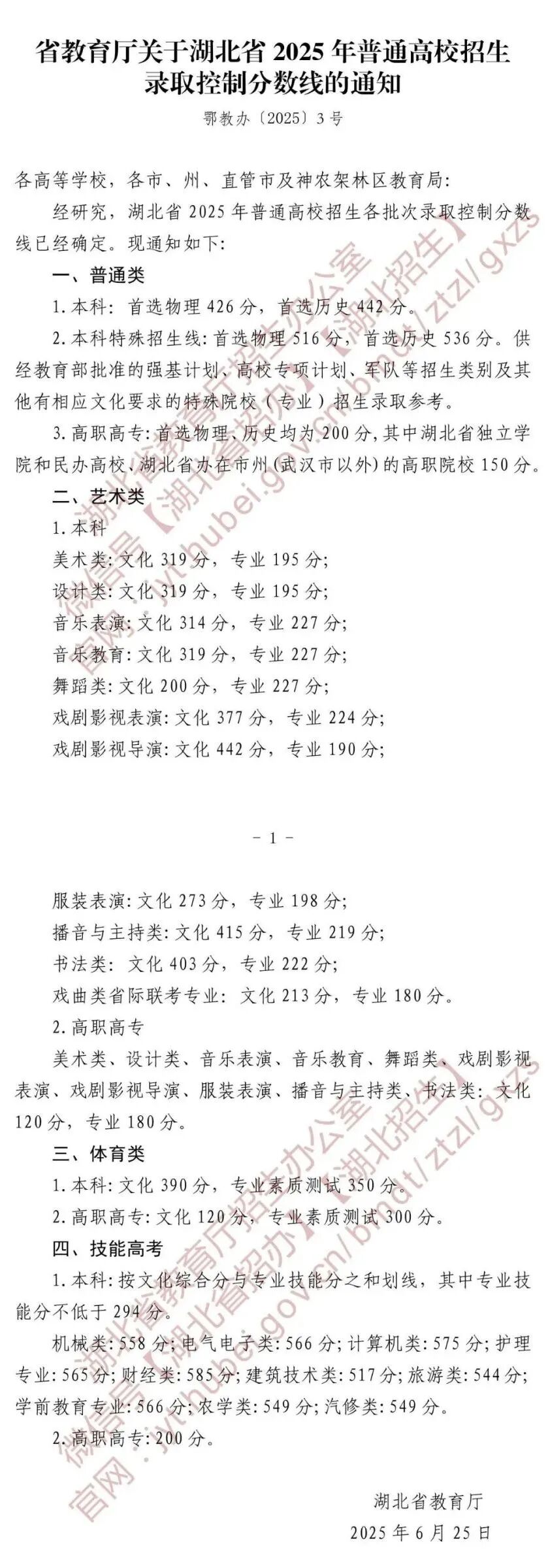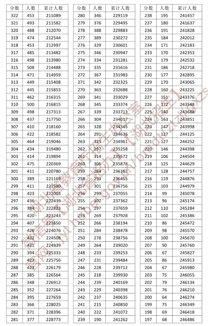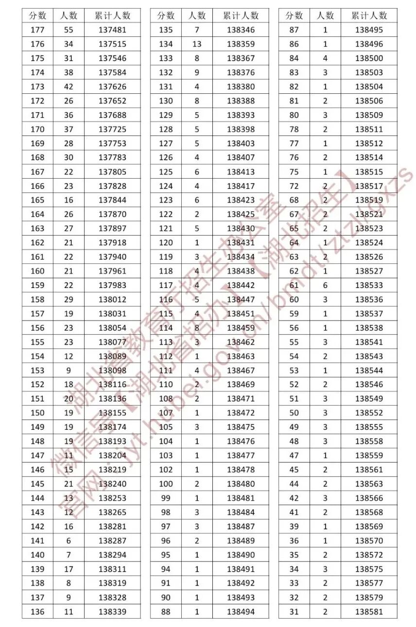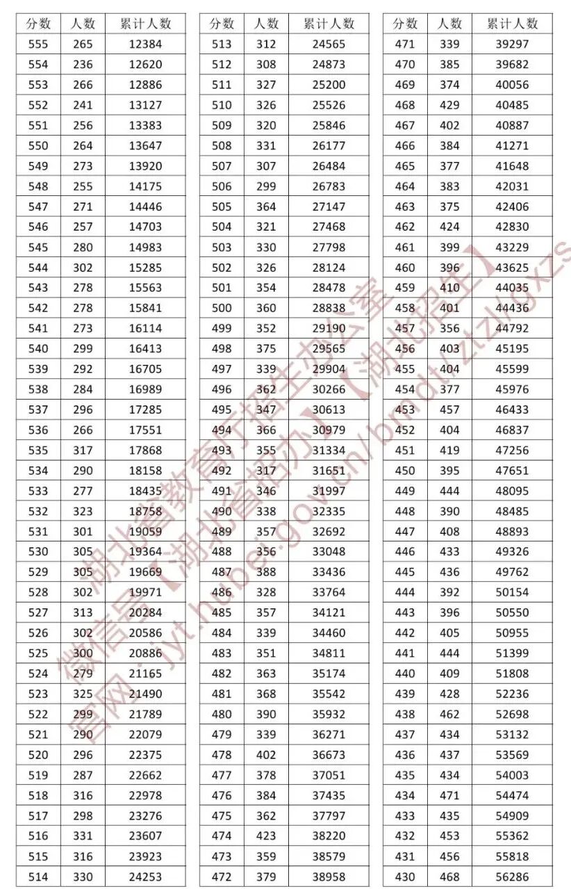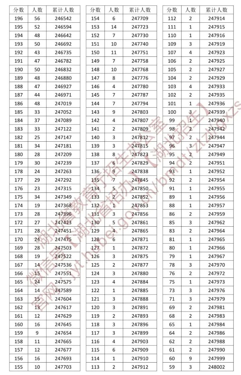 剛剛,湖北省教育廳發(fā)布2025年湖北高考普通高校招生錄取控制分?jǐn)?shù)線,2025年普通高考總分一分一段統(tǒng)計(jì)表。