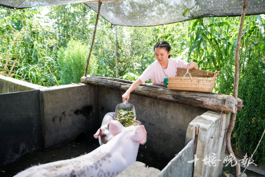 △回到家的梁冰冰主動分擔家務活,忙著喂豬、喂雞