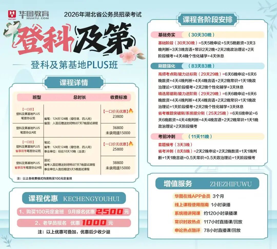 您無需奔波至武漢,在竹溪華圖分校即可報名以下武漢華圖課程、統(tǒng)一的全省價格,并可獲得由竹溪分校特別提供的“上岸加油”實體禮包!