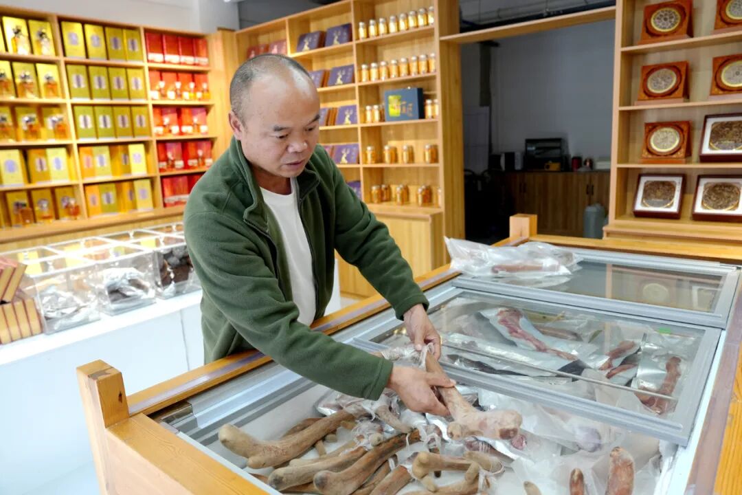 為提升附加值,合作社打造自主品牌“溪鹿緣”,開發出鹿血酒、鹿參片、鹿鞭膏等深加工產品。銷售上,王一華采用“線上+線下”模式,一邊直播帶貨吸引全國客戶,一邊設立直營店拓寬渠道,形成了“養殖—加工—銷售”的產業鏈。