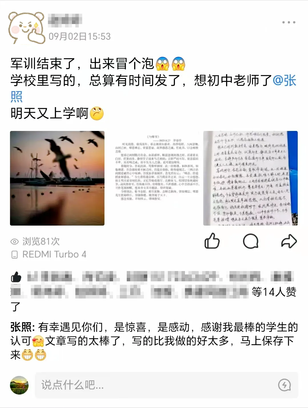 “教育不是灌輸知識,而是點燃火焰。”張照的班級管理充滿智慧和創新。他在班級內推行的小組競爭制,讓每個學生都能在公平競爭中找到自己的位置。