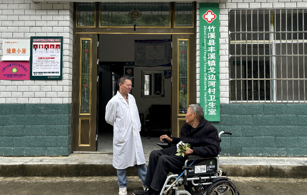 今年47歲的柏斌,童年時因疾病落下殘疾。然而,身體的局限從未阻擋他求知的腳步。懷著對生命的敬畏和對鄉親的牽掛,他毅然選擇學醫之路,于2018年從十堰市醫藥衛生學校畢業后,放棄留在城市的機會,義無反顧地回到生他養他的戈邊河村。