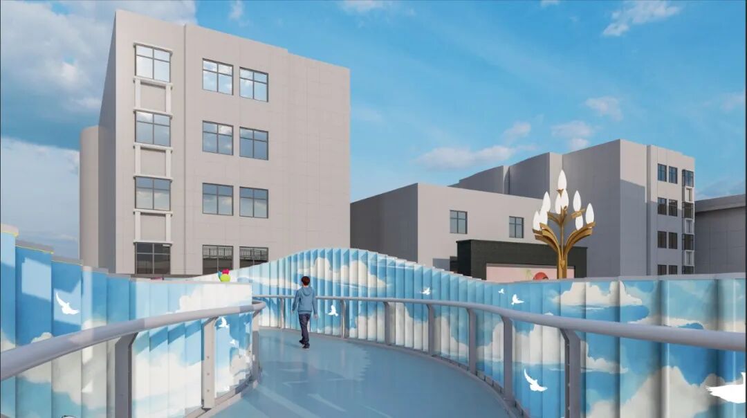 內景欄板采用藍天白云彩繪,橋面采用純色藍色。