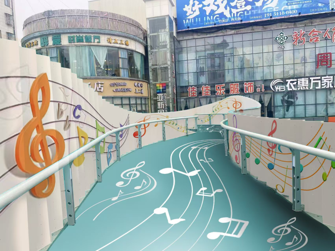 內景欄板及橋面,均采用音樂音符元素,表達動感竹溪美好愿景。