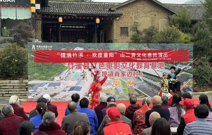 10月28日,十堰市“太極惠民生”地方戲曲公益匯演暨“情滿竹溪·歡度重陽”山二黃文化惠民演出在龍壩鎮肖家邊村拉開帷幕,以國家級非遺為媒,縣山二黃劇種保護傳承展演中心為基層人民群眾送上兼具文化韻味與節日溫情的重陽祝福。