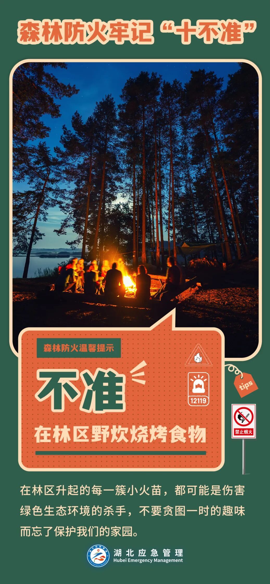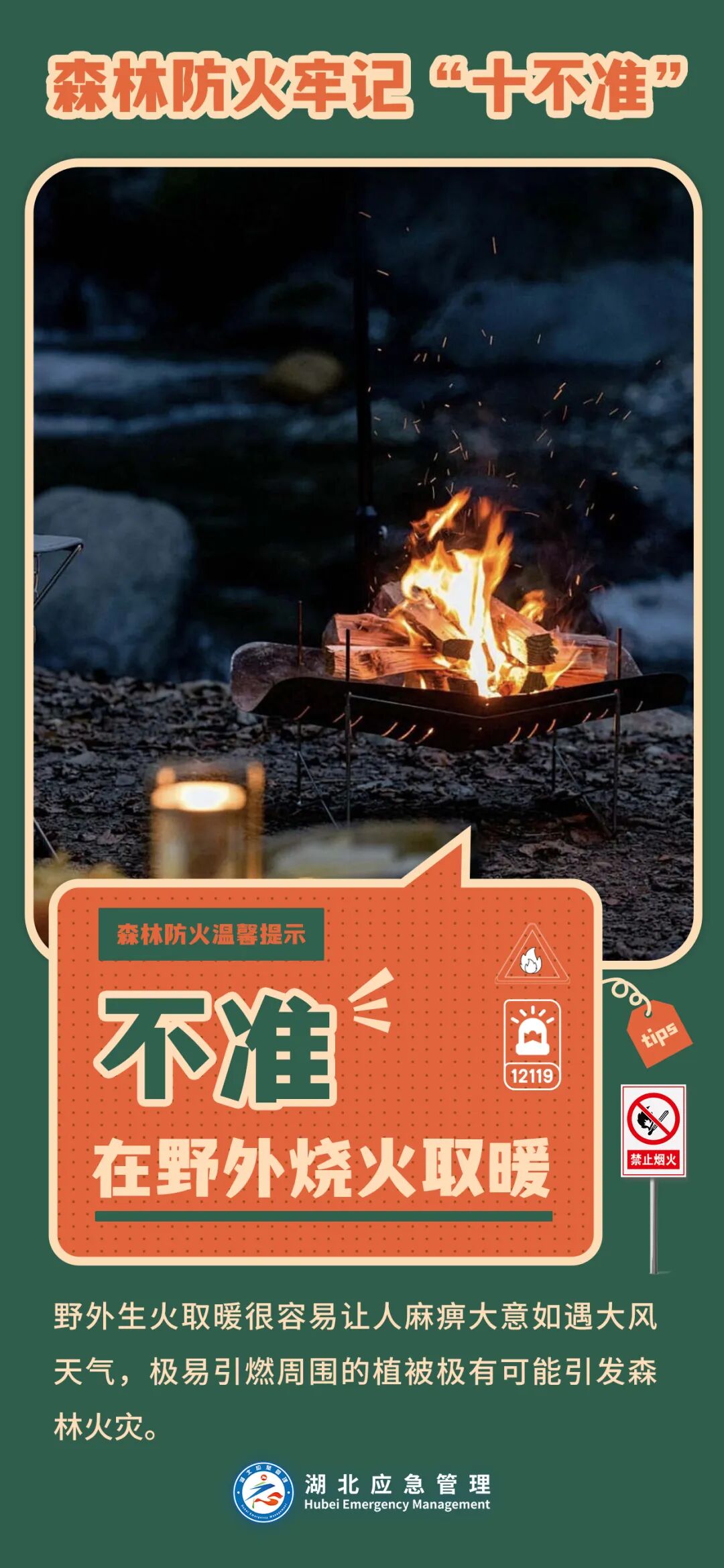 11月1日起,湖北省進入森林重點防火期,廣大農村地區居民要嚴格遵守法律規定,牢記森林防火“十不要”: