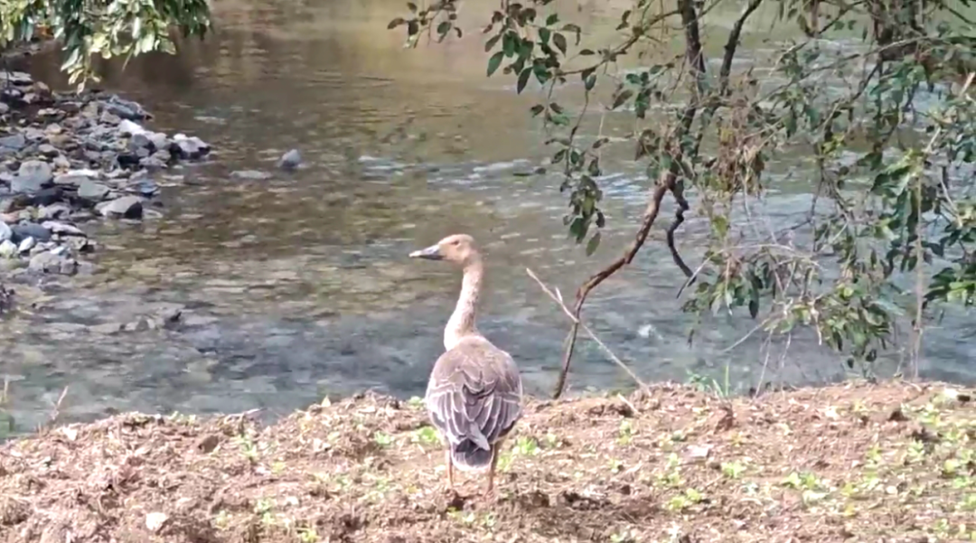 此次拍攝到的豆雁體型健碩,上體呈灰褐色且?guī)в械S白色羽緣,下體呈污白色。它最具標(biāo)志性的黑褐色嘴部帶有鮮明橘黃色帶斑,與橙黃色蹼足相映成趣,物種特征十分典型。這只豆雁獨(dú)自在開闊草地從容覓食,周邊植被茂密、水源充沛,為其提供了適宜的棲息環(huán)境。經(jīng)確認(rèn),該豆雁屬于冬候鳥種群,此次現(xiàn)身恰逢其南遷越冬的關(guān)鍵時(shí)段,進(jìn)一步印證了十八里長峽在候鳥遷徙路線中的重要生態(tài)地位。