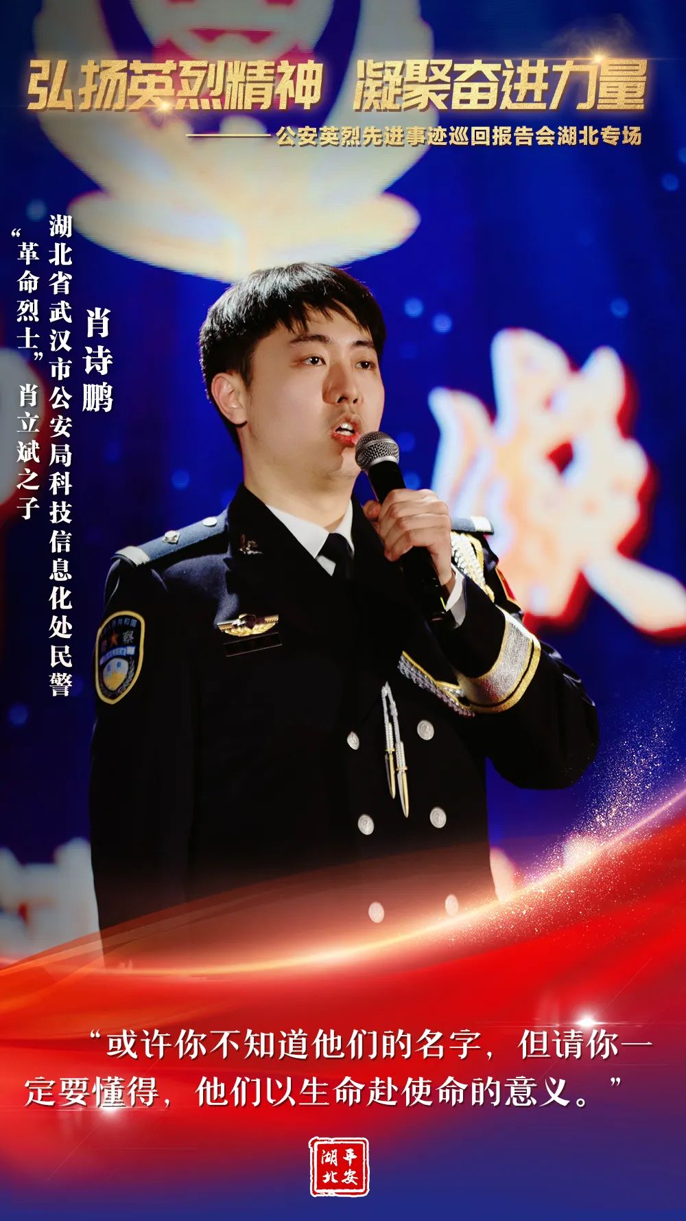 12月8日,全國公安英烈先進事跡報告團走進湖北,全省廣大公安民警輔警聆聽了報告。一個個公安英烈的故事感人肺腑、催人淚下,他們用責任、勇氣、智慧和忠誠詮釋了生命的無畏與精彩。他們的名字在警徽中閃光,他們的光榮在警旗上飛揚!