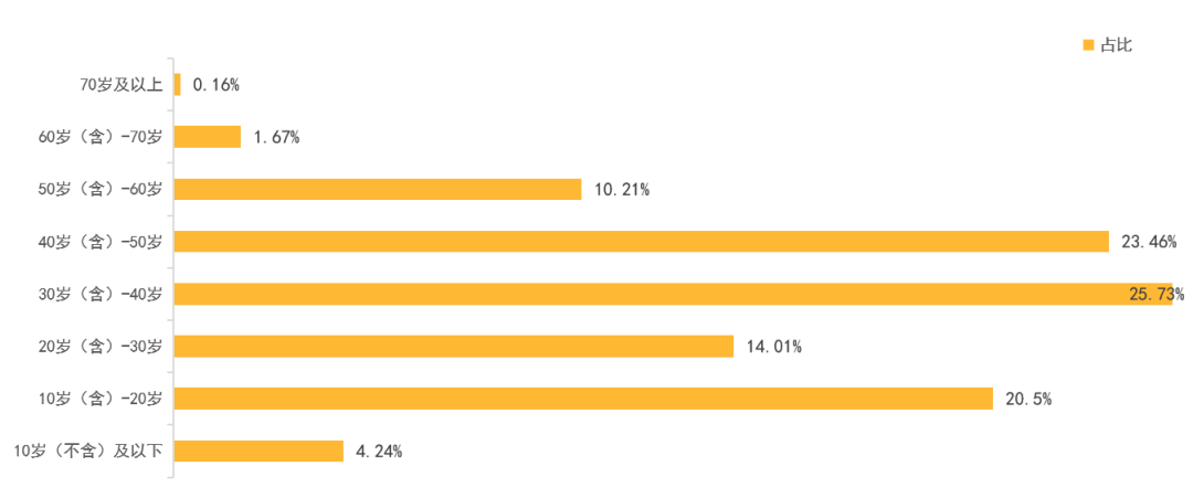 參賽堰馬的選手中,30歲(含)-40歲的年齡段最多,占比為25.73%