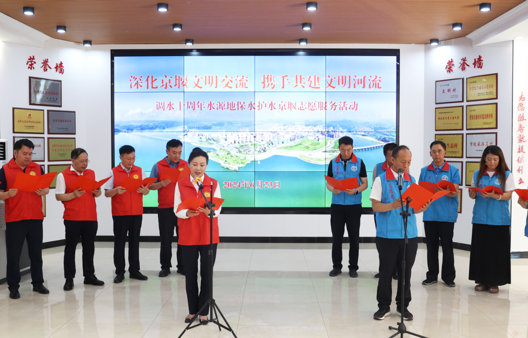 活動中,北京市與十堰市志愿者一同觀看《文明之舟 揚帆遠航——新時代文明實踐在十堰》宣傳片,并聽取十堰市城市文明創建中心志愿者詳細宣講十堰市在守水護水,創新開展“文明河流”建設的過程和取得的工作成效。同時通過現場守水護水志愿者們精心表演的歌伴舞《文明實踐有力量》、朗誦《為了一江清水向北流》、情景劇《綠水和青山的童話》、小合唱《一庫碧水送北京》生動感人的文藝演出,展現出十堰人民群眾確保“一江清水永續北送”的堅定決心和熱情,積極引導兩地市民群眾培育守水護水的文明新風尚,養成節水護水的文明習慣,共同當好南水北調水源區的“守井人”。
