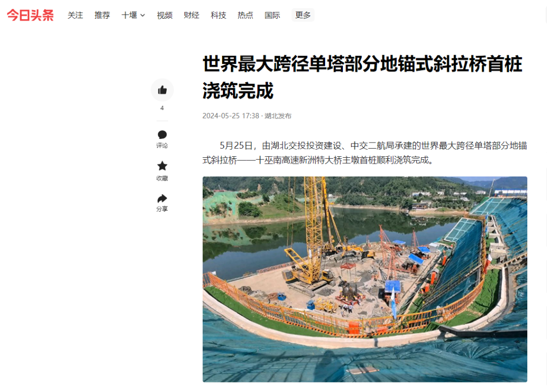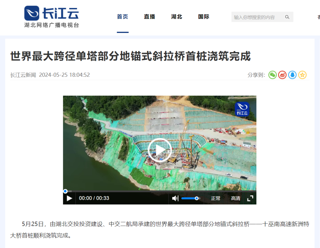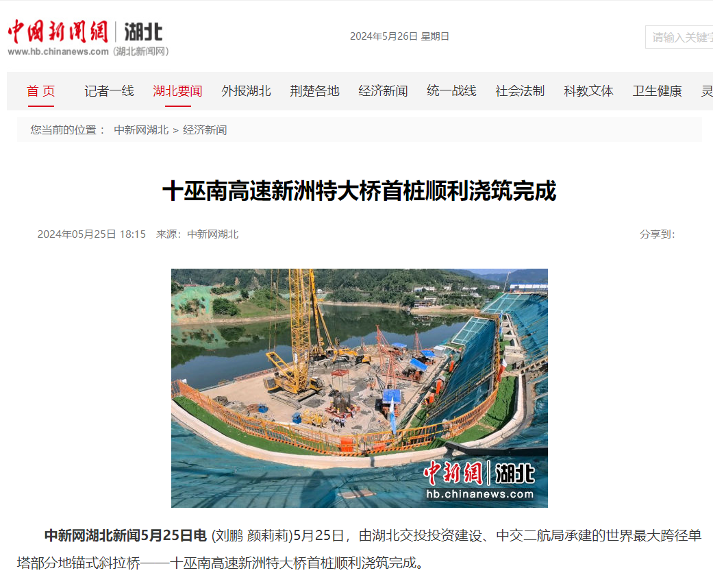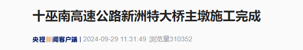 9月29日上午,央視新聞客戶端發布《十巫南高速公路新洲特大橋主墩施工完成》,聚焦位于我縣境內的十巫南高速公路建設施工進度。