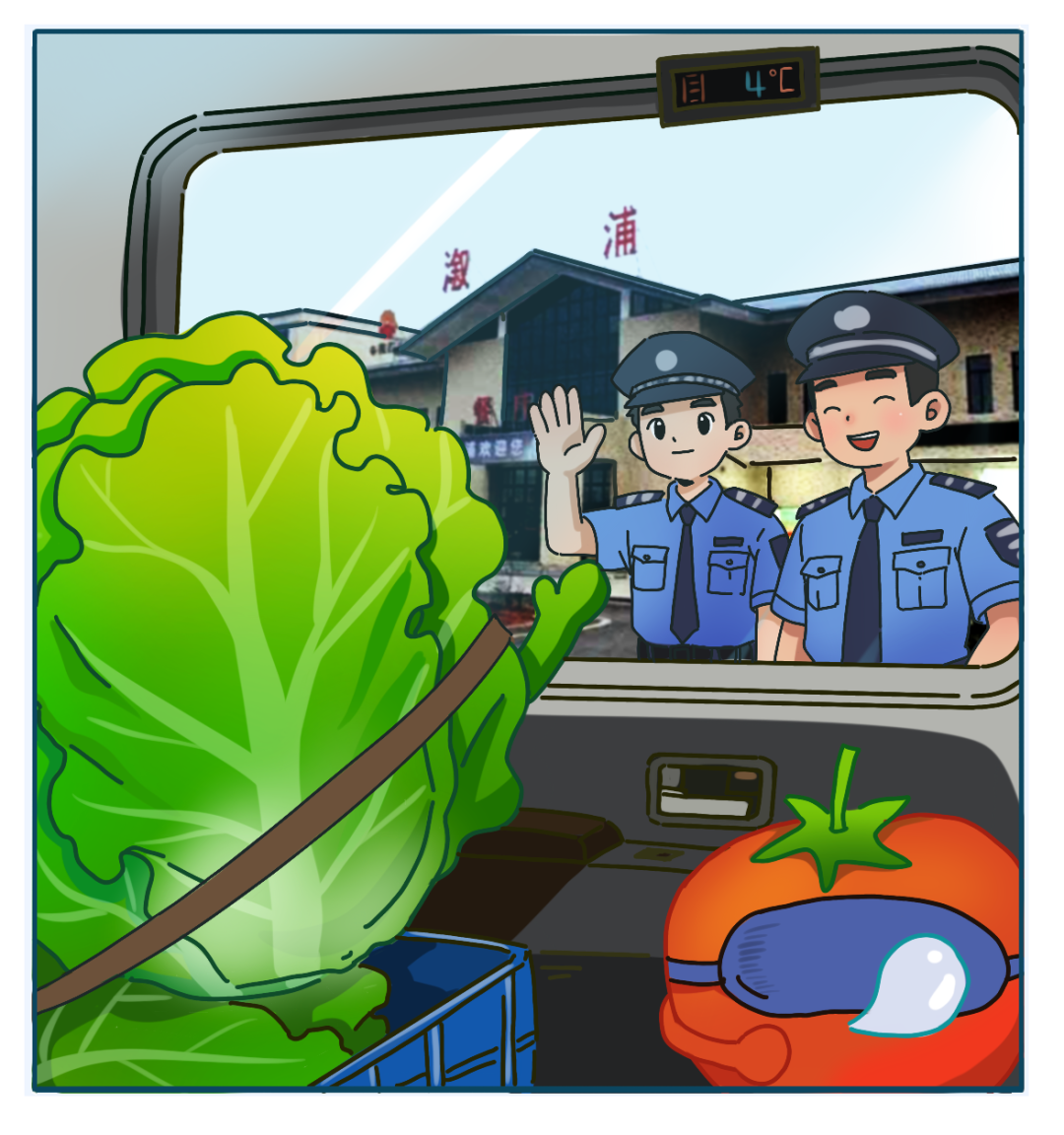 “歡迎來到溆浦,請(qǐng)停車接受檢查。”兩位高速巡警來到車旁,引導(dǎo)駕駛員關(guān)師傅和李師傅完成檢查。得知我們是運(yùn)往香港的蔬菜,警察同志仔細(xì)核查后敬禮放行:“路途遙遠(yuǎn),一路平安!”
