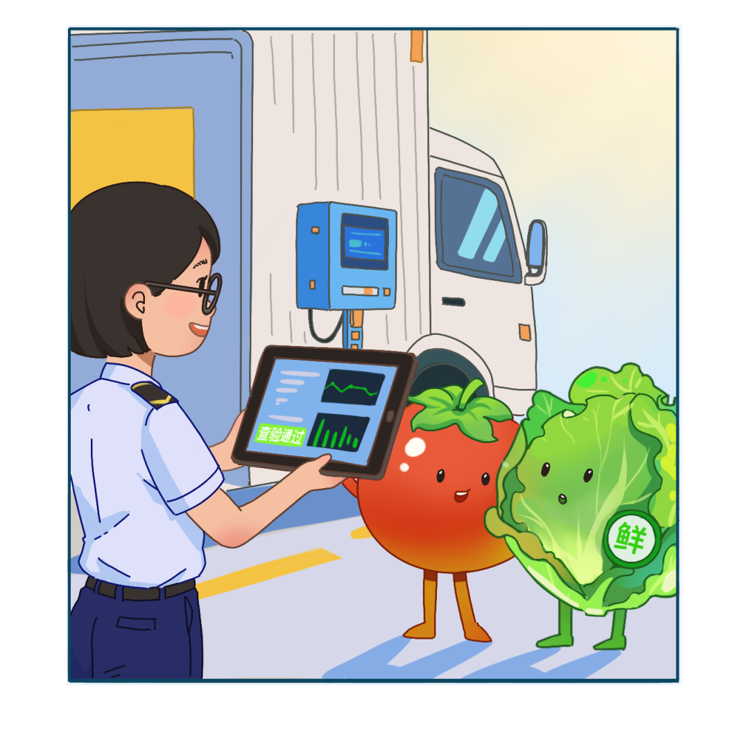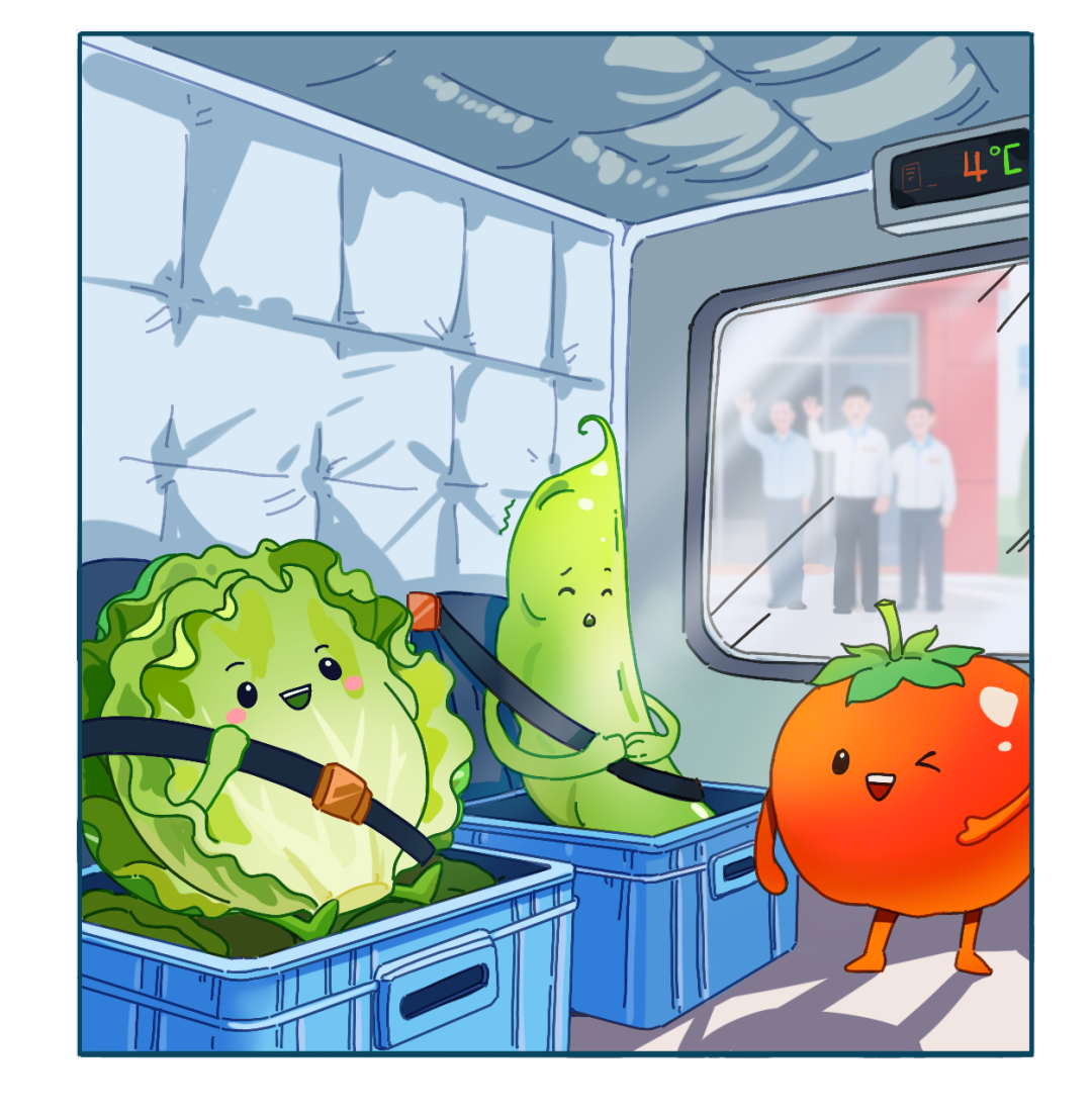 “查驗(yàn)未見異常,立即裝車,加施鉛封!”半小時(shí)后,我和柿崽、豆角哥,還有黃白菜、油麥菜、蘿卜、茄子等20多噸各類蔬菜伙伴們,有序登上了供港冷鏈貨車。