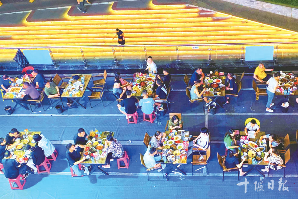 9月20日晚,華燈初上。位于張灣區漢江路街道的陽光棲谷天街煙火氤氳、人流如織,千余米街市霓虹閃爍;1.2公里外的萬達金街車水馬龍、活力涌動,夜經濟與商圈經濟在此交相輝映。