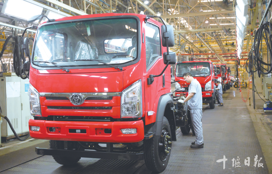 位于張灣區的湖北三環汽車有限公司整車工廠車間內,一臺臺輕卡專用車陸續下線。張啟國 劉剛 攝