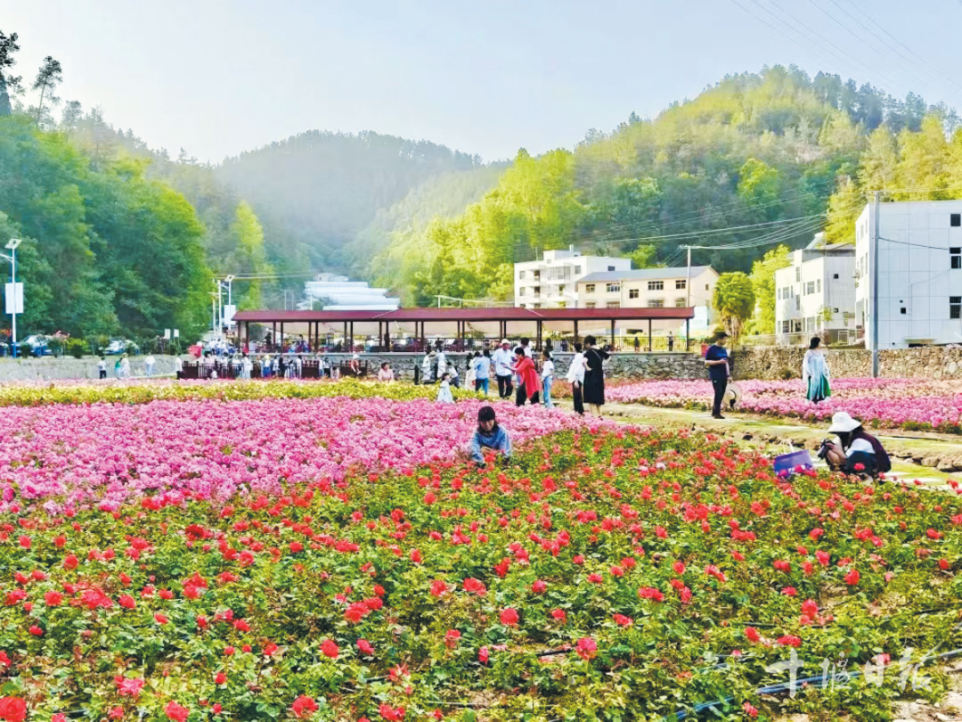 梁家溝村月季花競相綻放,與錯落有致的民居、蜿蜒的村道相映成趣。