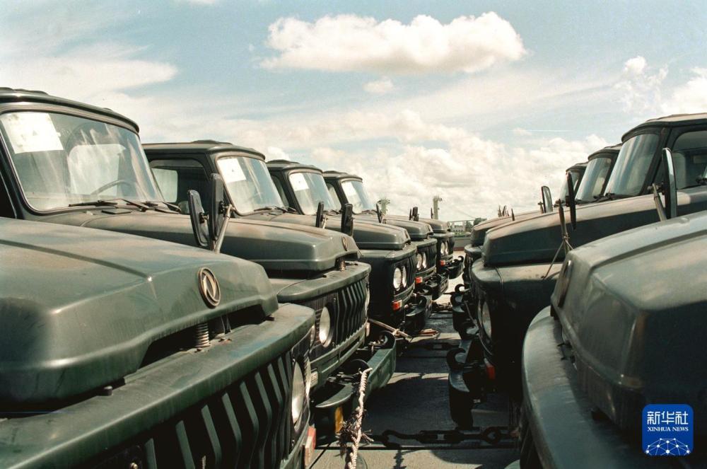 1993年10月,一批中國東風6噸半載重汽車運抵緬甸仰光港。新華社記者 陳炳其 攝