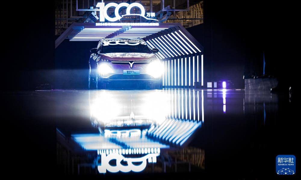 2024年11月14日在湖北武漢拍攝的2024年中國新能源汽車1000萬輛達成活動現場。新華社記者 肖藝九 攝