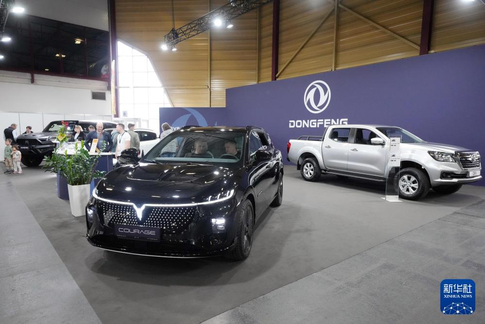 2025年4月27日,在拉脫維亞里加,人們在“2025里加波羅的海汽車展覽會”參觀東風展臺。 新華社發(艾迪斯·帕倫斯 攝)