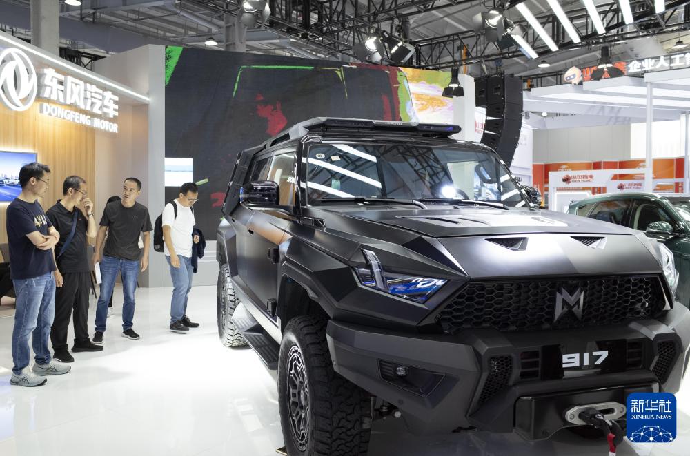 2023年9月5日,觀眾在中國國際服務貿易交易會東風汽車集團展臺了解東風猛士917新能源汽車。新華社記者 胡智軒 攝
