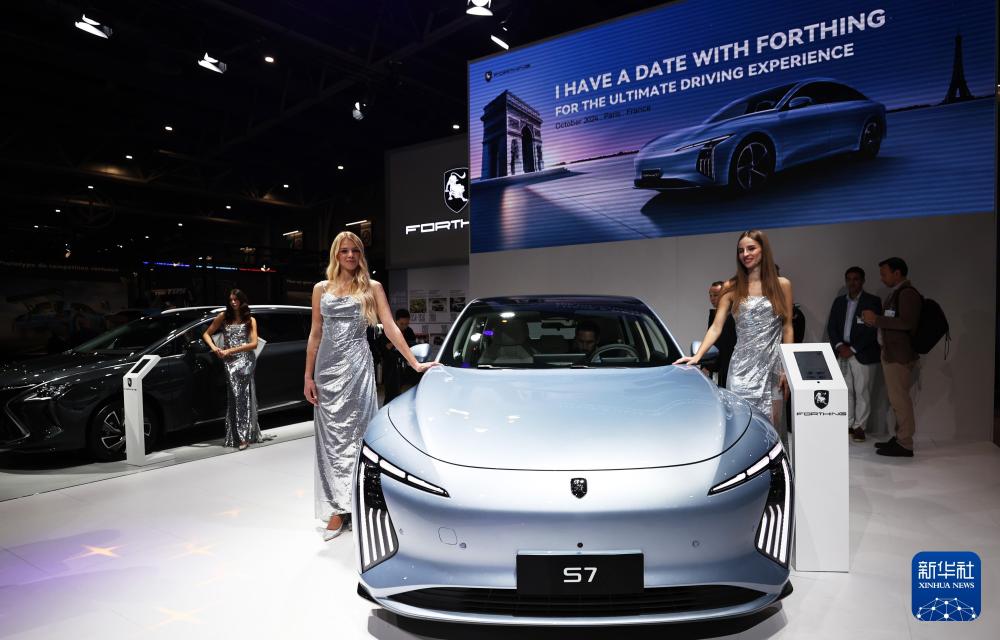 2024年10月14日,人們在法國巴黎凡爾賽門展覽中心舉行的2024巴黎車展媒體開放日上參觀東風風行展臺。新華社記者 高靜 攝