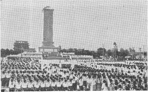 1958年5月拍攝的矗立在天安門廣場上的人民英雄紀念碑。來源:北京日報