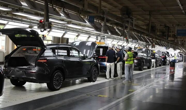 2025年8月25日拍攝的嵐圖汽車武漢工廠生產線。新華社記者 龔兵 攝