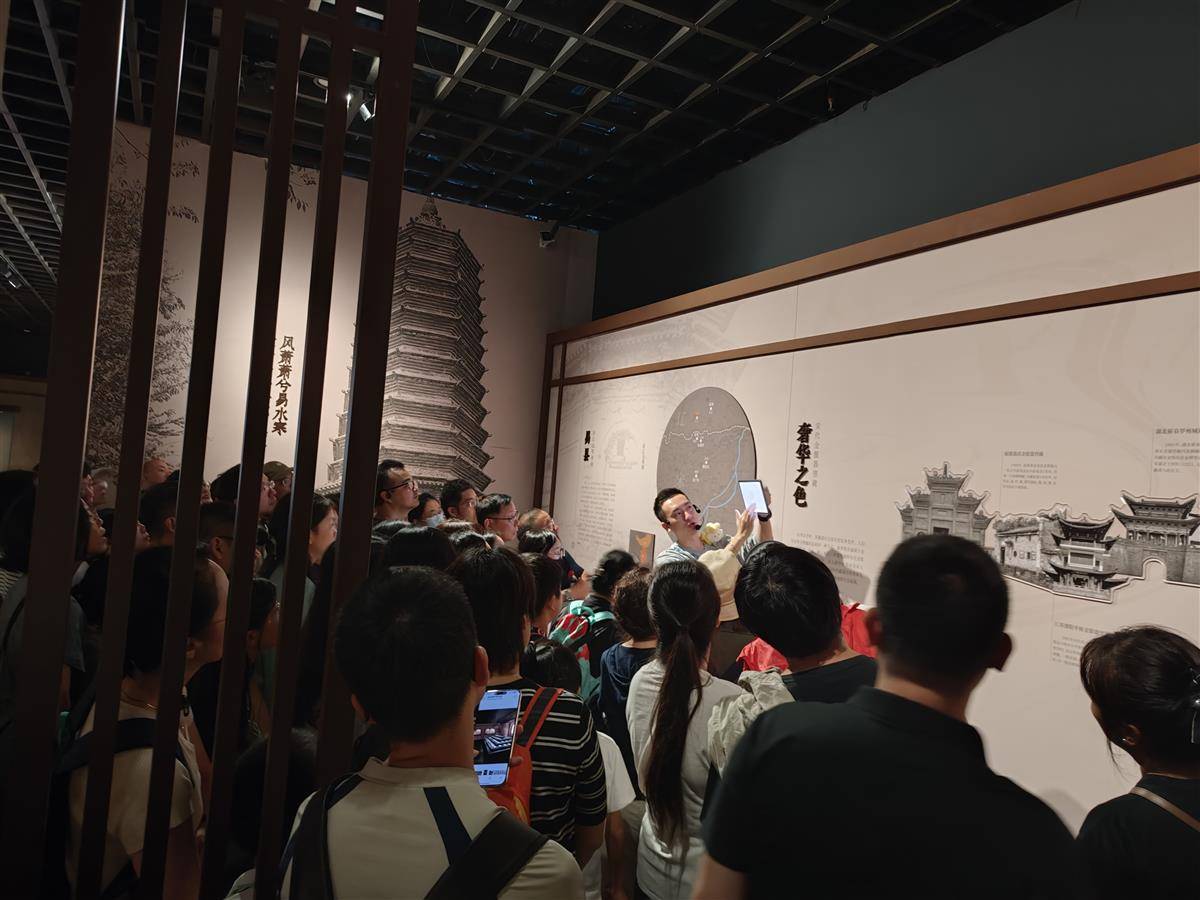 文博大V“寶藏獵人董臻”在展廳做專場導覽(圖源:武漢博物館)