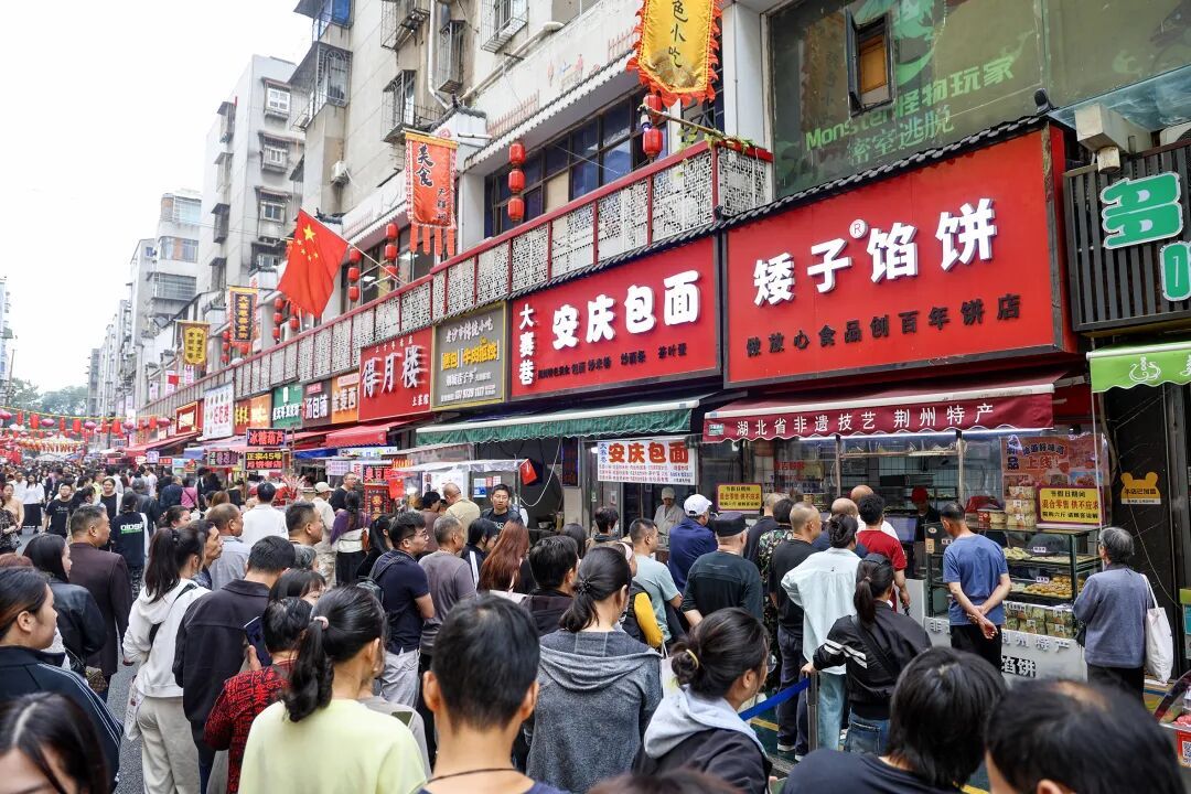 國(guó)慶期間的荊街化身為非遺文化與國(guó)潮新風(fēng)交融的展示舞臺(tái),營(yíng)造出穿越時(shí)空的沉浸式體驗(yàn)。