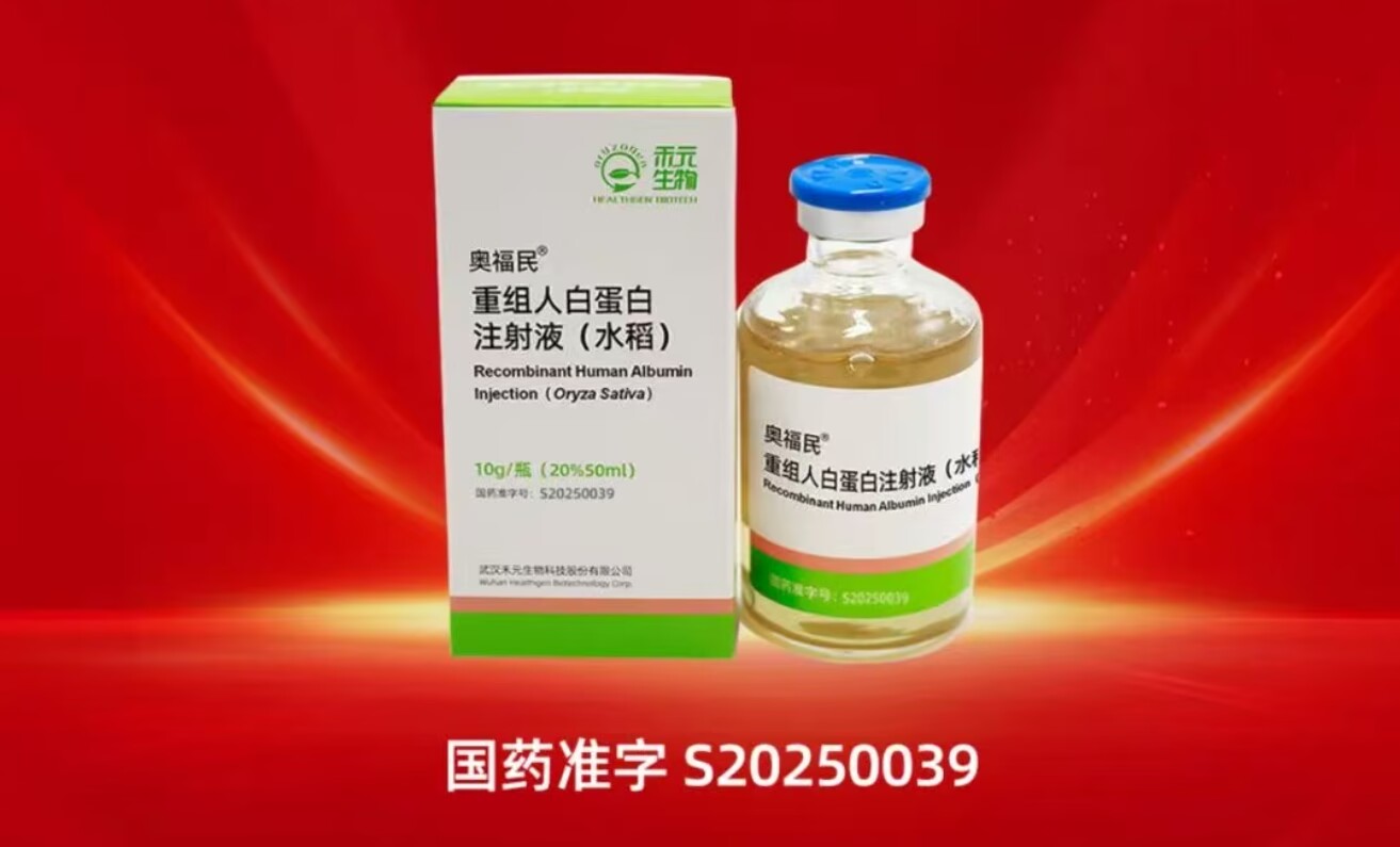 武漢禾元生物申報的全球首個植物源重組人血清白蛋白(HY1001)獲批上市。