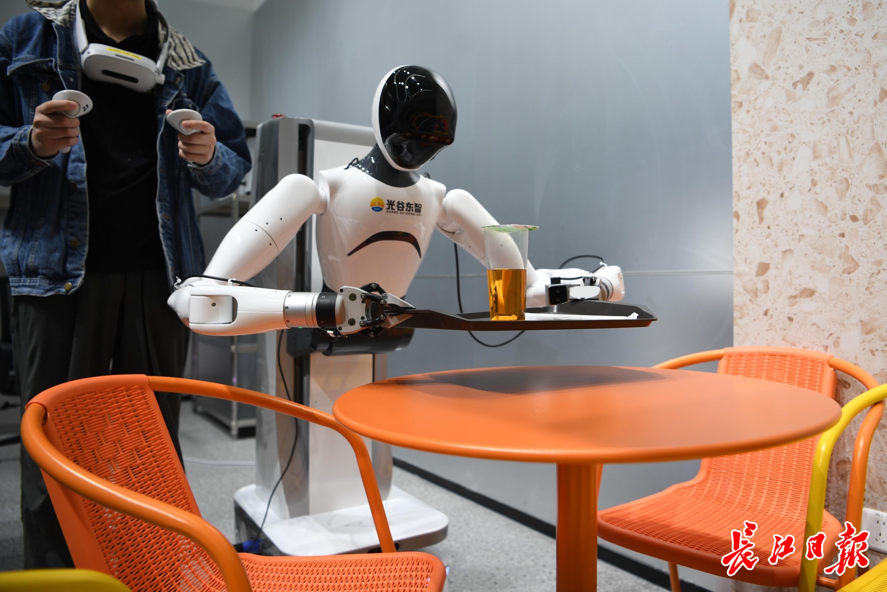 光谷東智機器人在奶茶店端茶倒水。 長江日報記者高勇 攝