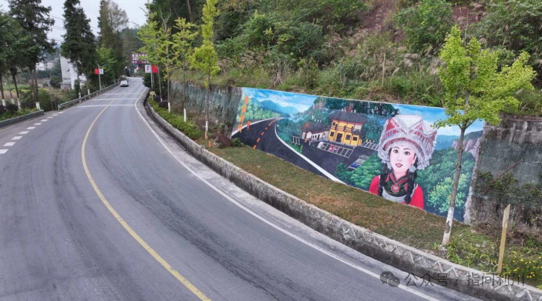 沿途花墻、景觀石、土家墻畫與山水相融。“姐姐快看!路邊還有墻畫,畫的是土家幺妹兒!”來自武漢的游客張女士搖下車窗,指著路邊的民族墻畫贊嘆不已。