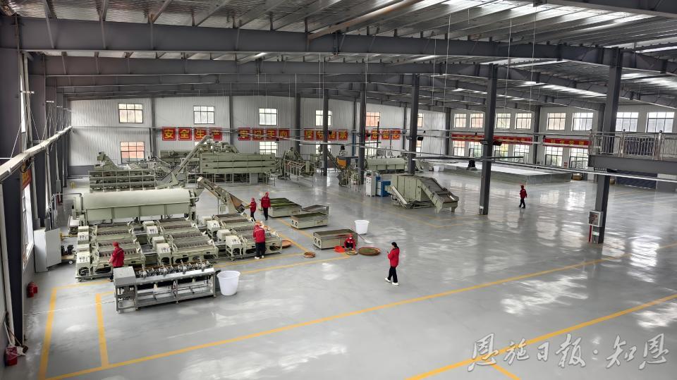 恩施御景生態(tài)農(nóng)業(yè)科技有限公司相關(guān)負(fù)責(zé)人潘斯軍站在廠房的智能加工線旁,看著鮮葉變成干茶,語氣里滿是自豪:“高峰期我們每天的干茶吞吐量達(dá)8000至1萬公斤。”