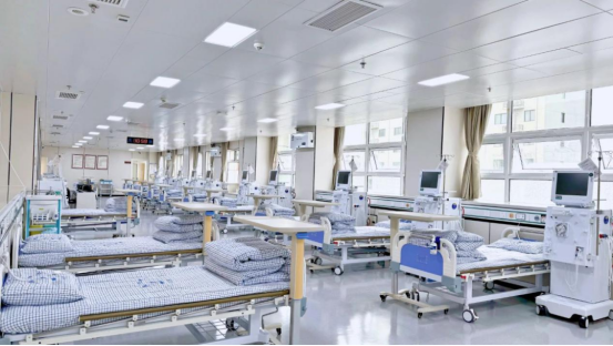 中心位于醫養中心大樓7樓,面積1316平方米,按現代化血透室標準建設,分區合理,設有1個普通透析治療區、3個隔離透析治療室,并配備獨立更衣室、儲物柜、無線網絡、微波爐、飲水機等便民設施,致力于為透析患者打造舒適的治療環境。(柯銳 肖曉)