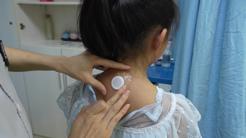陳柵杉介紹,在進行貼敷之前一定要面診辨證,并不是所有人都適合。只有針對不同體質和身體狀況,制定相對應的治療方案,才能保證治療效果。像陰虛火旺的體質,比如手腳發熱,特別怕熱,還有容易便秘的兒童就不適合貼,皮膚過敏等一些特殊的人群,也不適合貼。