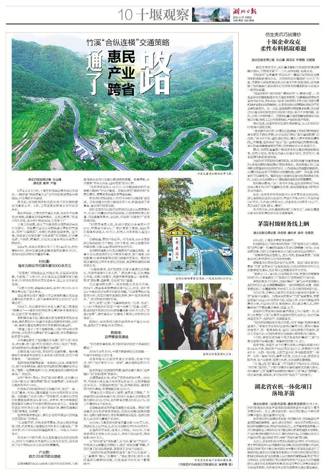 9月10日,《湖北日報(bào)》以《竹溪“合縱連橫”交通策略通了惠民產(chǎn)業(yè)跨省路》為題,專版報(bào)道竹溪縣近年來通過創(chuàng)新實(shí)施“合縱連橫”交通戰(zhàn)略,成功將交通建設(shè)與民生改善、產(chǎn)業(yè)發(fā)展和區(qū)域協(xié)同深度融合,實(shí)現(xiàn)從“交通末梢”到“區(qū)域節(jié)點(diǎn)”的躍升,為縣域經(jīng)濟(jì)的高質(zhì)量發(fā)展注入強(qiáng)大動力的探索實(shí)踐。