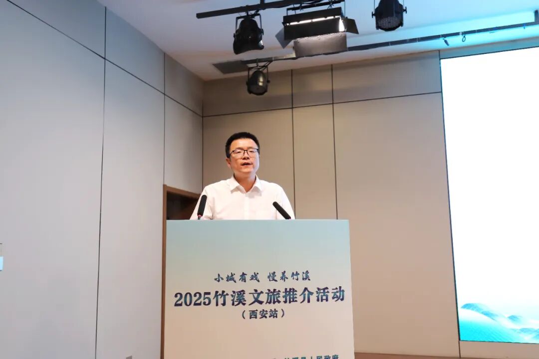 竹溪新聞網訊 記者 彭鋒 報道:9月15日,竹溪縣在陜西西安舉辦文旅推介對接活動,吸引當地120余家頭部旅行商參加,打出“文化展示+資源推介+精準簽約”組合拳,進一步深化“陜西老表游竹溪”合作機制,推動陜鄂兩地文旅資源優勢互補、協同發展,共繪跨省文旅“詩與遠方”新圖景。陜西省旅游協會、陜西省研學實踐教育協會、陜西旅游飯店協會等文旅行業機構負責人,陜西省西安市雁塔區文化和旅游體育局副局長陳琳,竹溪縣委副書記劉冬勤,竹溪縣委常委、副縣長李海濤出席活動。