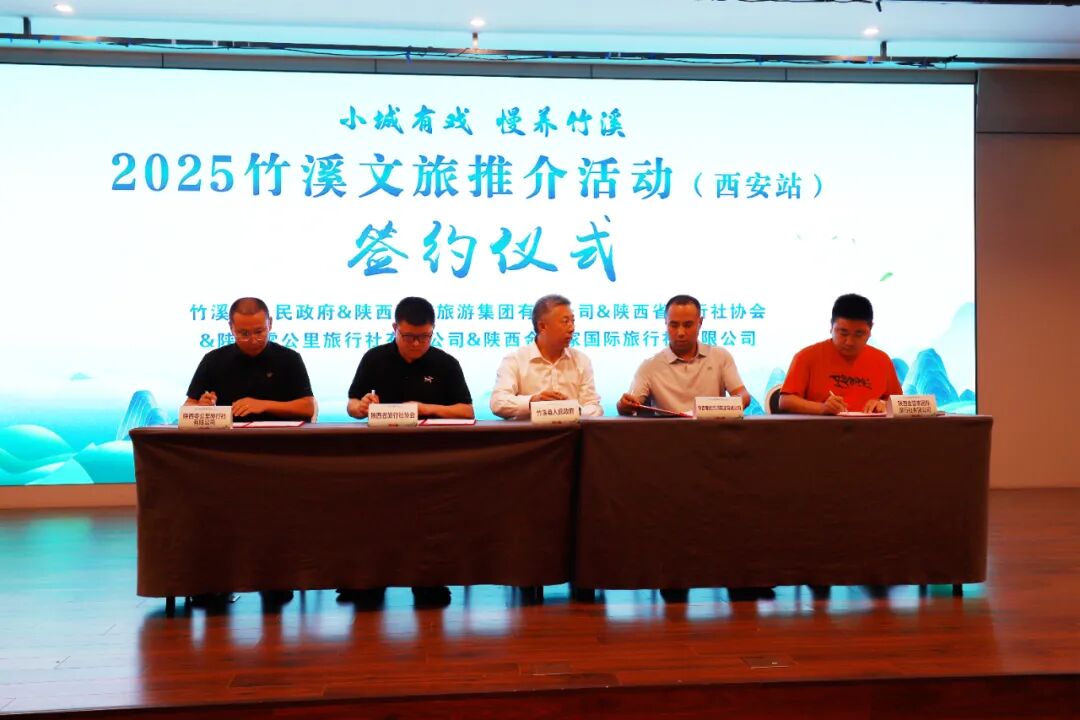 本次大會簽約環節成果豐碩,共簽訂5份“引客入溪”合作協議,涵蓋客源互送、線路共建、營銷聯動等領域,合作方包括陜西秦旅旅游集團有限公司、陜西省旅行社協會周邊游分會、陜西零公里旅行社有限公司、陜西金管家國際旅行社有限公司等。這些協議的簽訂,將為“陜西老表游竹溪”活動提供有力支撐,推動陜鄂兩地文旅資源深度整合,助力跨省文旅產業合作共贏。
