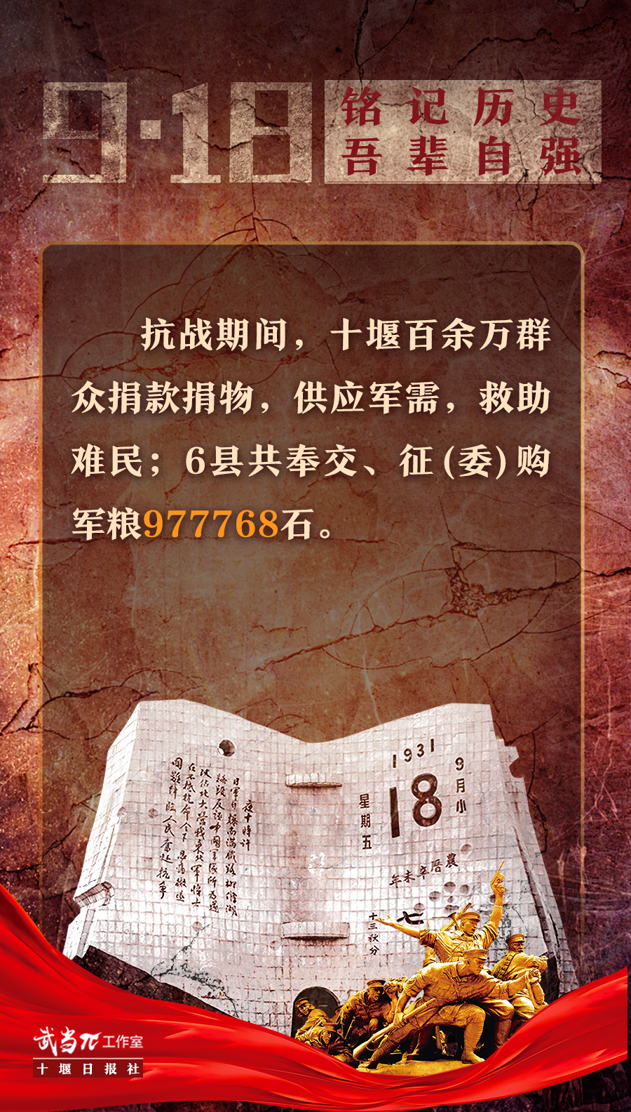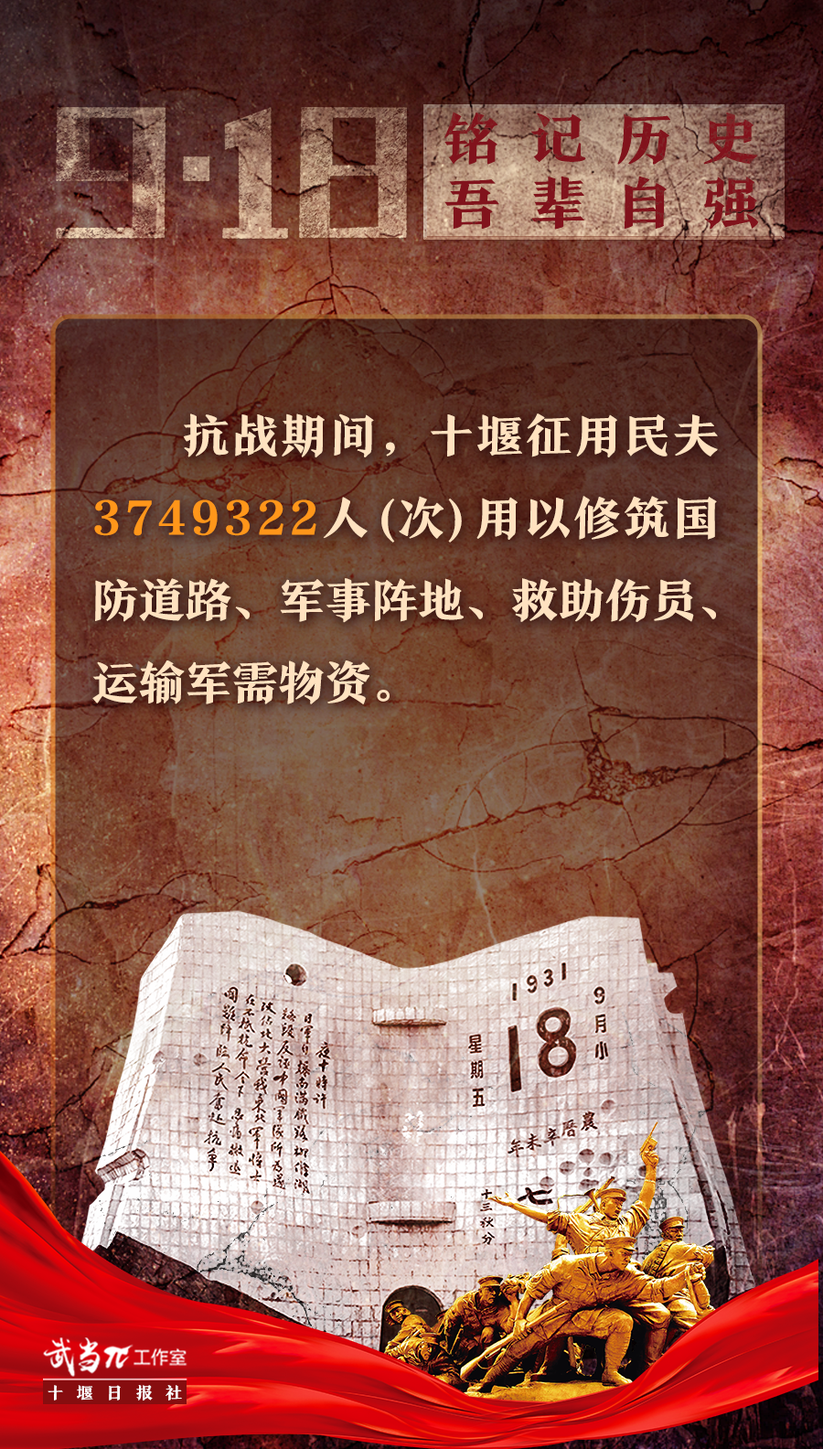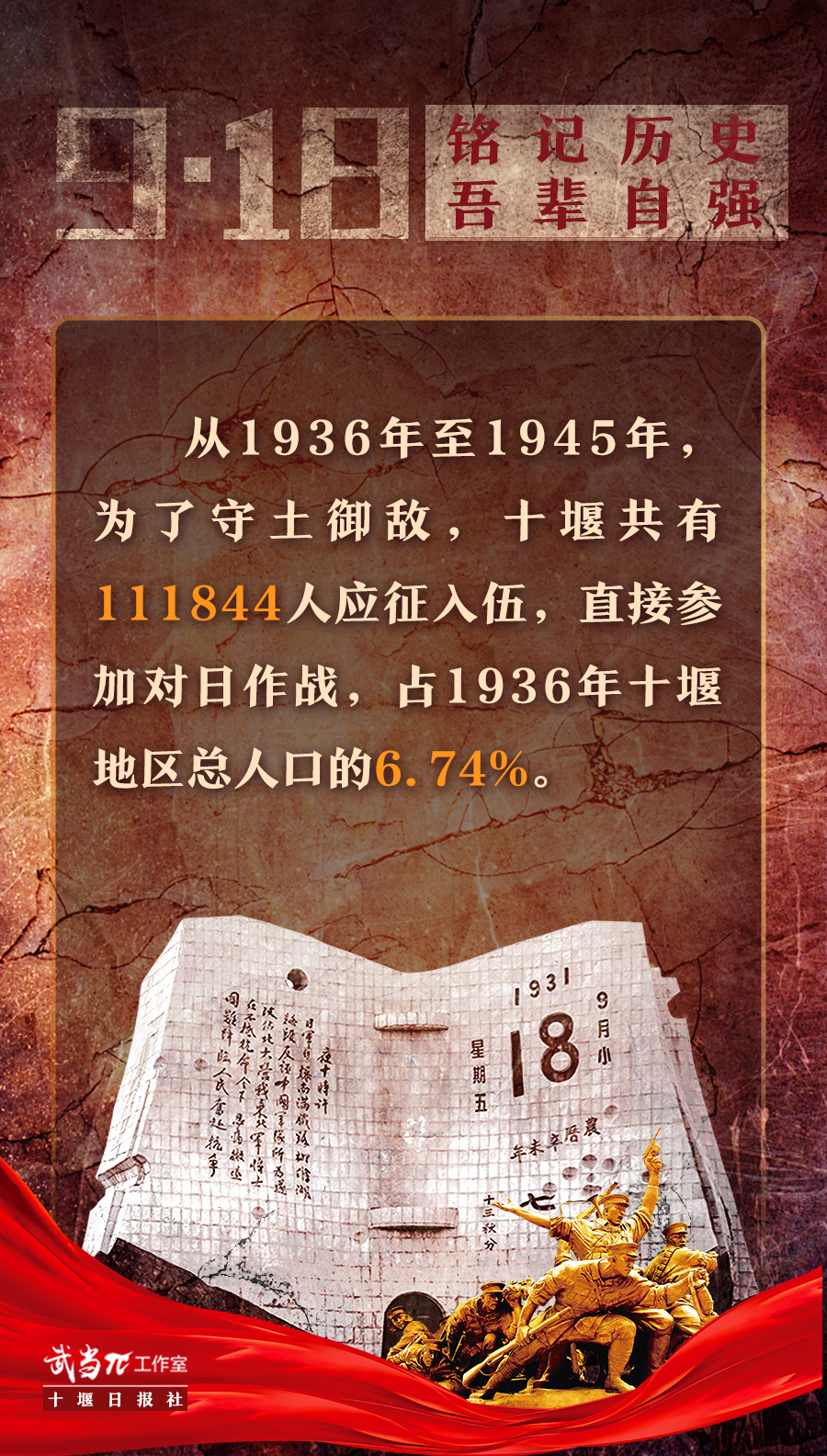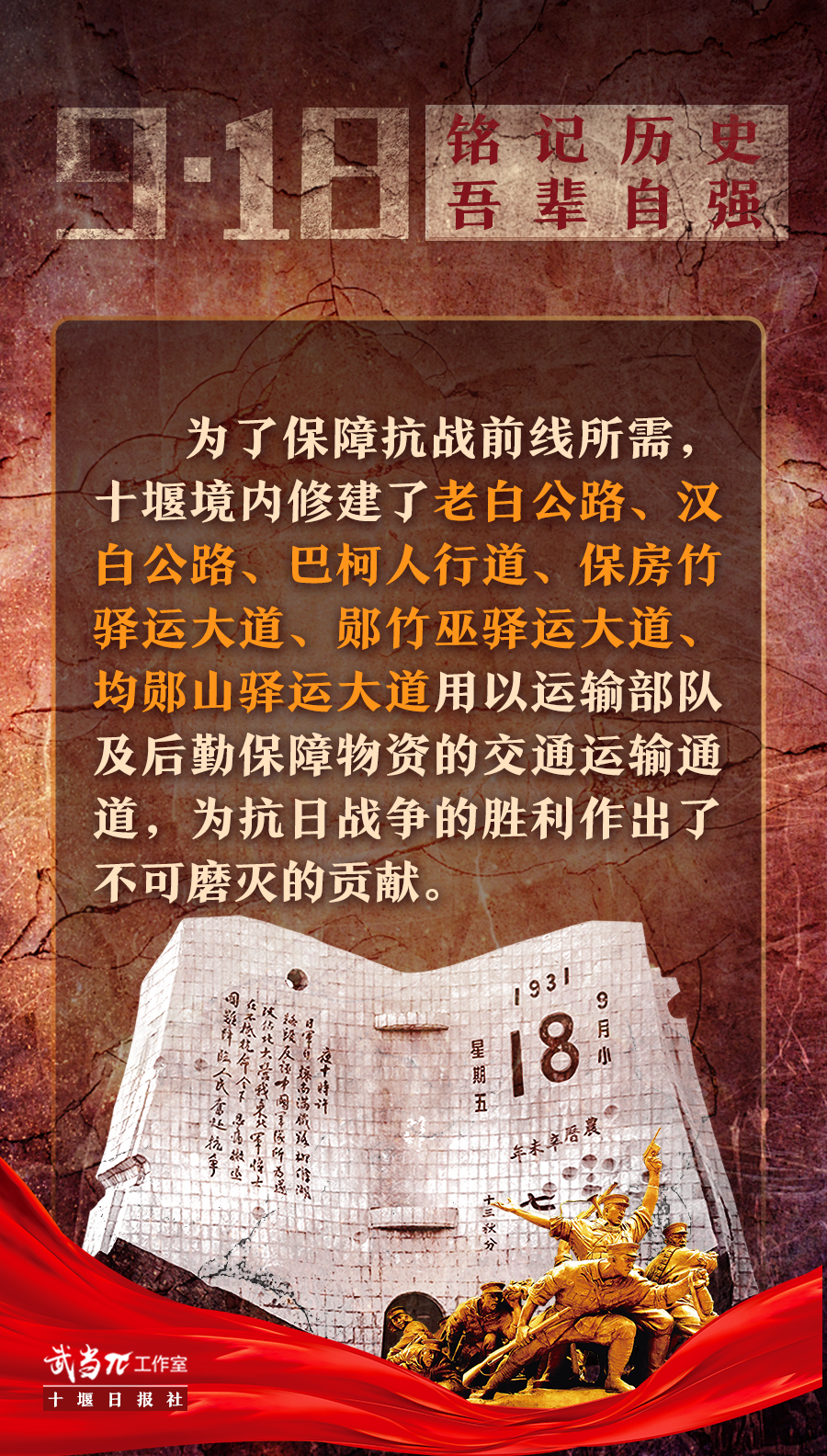 1931年9月18日,日本關(guān)東軍悍然炸毀南滿鐵路鐵軌,炮轟北大營,制造了震驚中外的九一八事變,開始了蓄謀已久的侵華戰(zhàn)爭。抗戰(zhàn)期間,十堰地區(qū)先是大后方,后又演變?yōu)榍把仃嚨兀?1萬人奔赴抗日戰(zhàn)場并投入大批民工和物資,供應(yīng)前方軍需、修筑交通生命線。