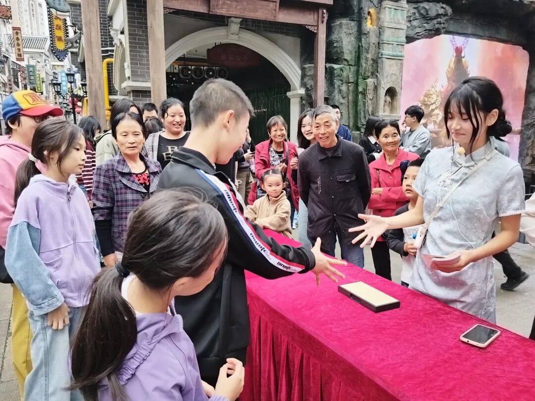 晚上十一時的武陵不夜城,最后一組花燈漸次熄滅,街區游客中心工作人員江艷仔細檢查完每個角落,才準備下班。連日來,她日均接待游客咨詢超500次,嗓音已有些沙啞,但辦公桌上那本寫滿密密麻麻文字的筆記本,記錄著比數據更珍貴的溫暖瞬間。