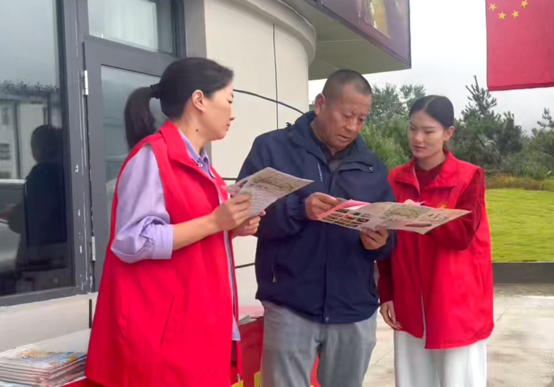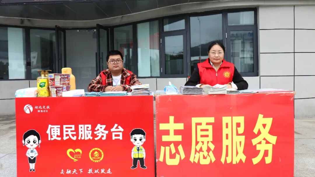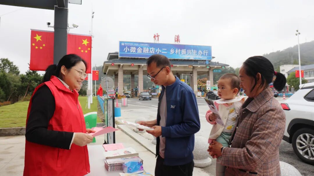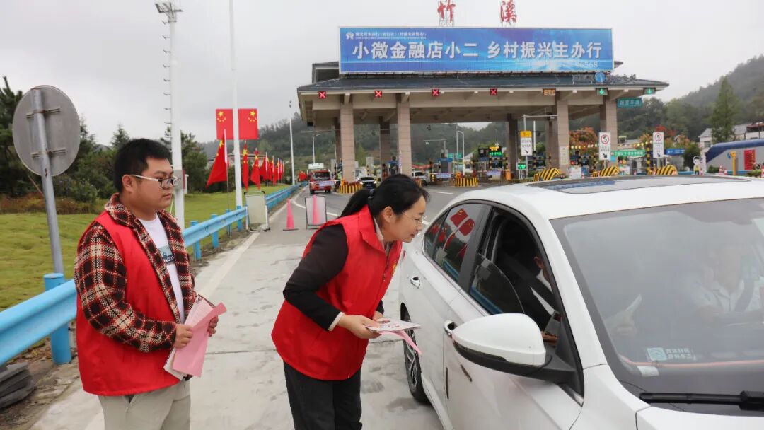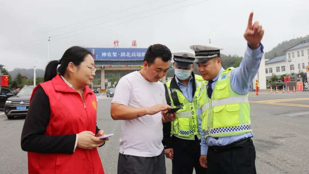 10月2日清晨七時,當秋雨飄過竹溪高速收費站檐角時,志愿者秦健和同事已佩戴好工作證,在服務接待站前整理宣傳折頁。